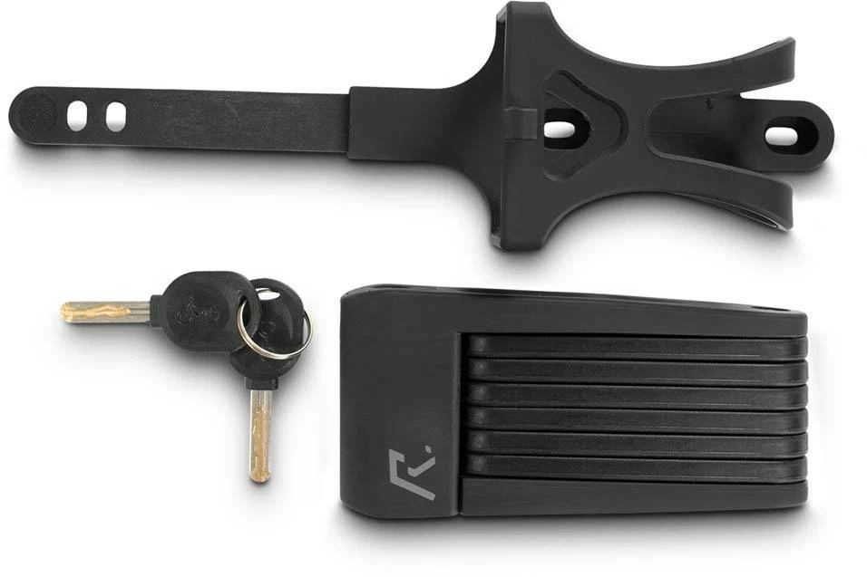 Le verrou pliable, à la fois très sûr et très pratique, mesure 700 mm de long et est particulièrement maniable. La surface caoutchoutée protège le cadre des rayures et la serrure de la corrosion. Deux clés et un support caoutchouté inclus.